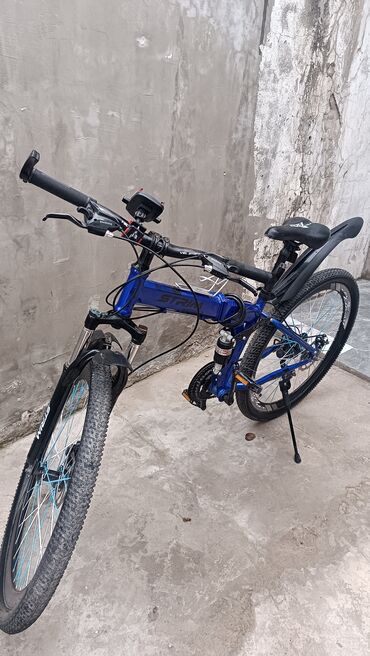 STRIM dağ velosipedi - Çərçivə: yüngül ərintidən, idman tipli geometriya - Təkərlər: 26" (qalın protektorlu MTB şinləri), ikiqat alüminium disk - Asılqan: ön amortizator (şaftalı yollarda yumşaq g...