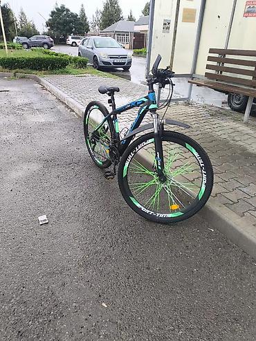 - 29” təkərlər, “SPORT-TIME” yazılı şinlər, yaşıl şpilsli disk təkər görünüşü