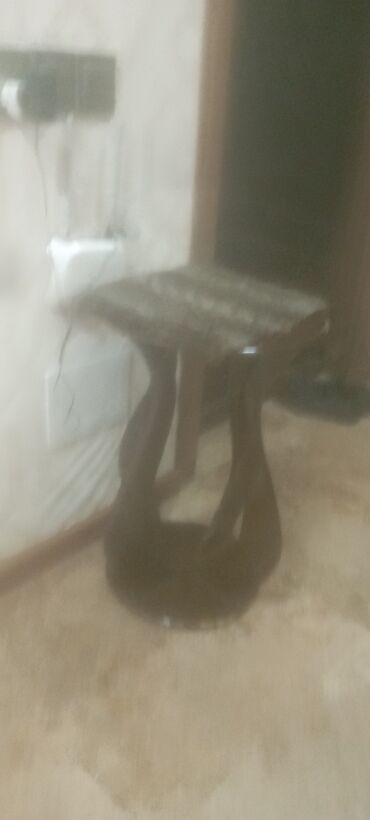 Taxta dairəvi stol - Material: bərk taxta - Forma: dairəvi üstlük - Ölçü (təxmini): üst səthin diametri 40–45 sm; hündürlük 45–50 sm - Konstruksiya: 3 ayaqlı dayanıqlı baza, aşağıda halqavari bərk...