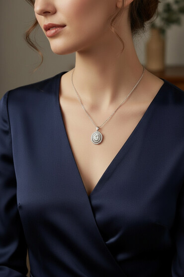 Romantik təqdimat üçün ideal hədiyyə seçimi. Kulonun çoxsıralı parlaqlığı işıqda güclü əks olunma yaradır, zəncir isə boyunda yüngül və rahat görünüş verir.