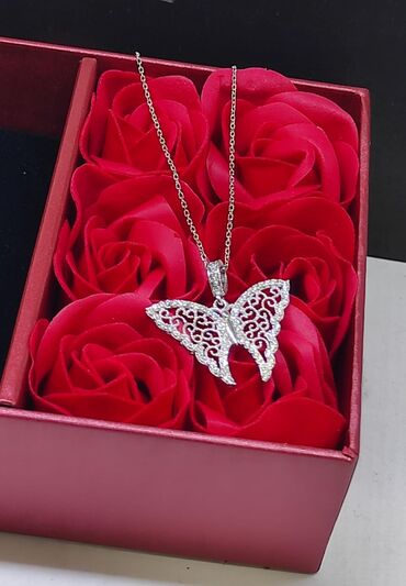 Güllü hədiyyə qutusunda zərif boyunbağı
