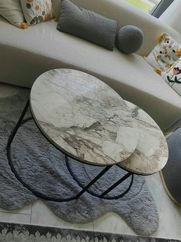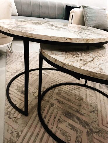Klassik üslubda kofe/jurnal masası - Rəng: açıq krem, kənarlarında qızılı haşiyə - Forma: düzbucaqlı üst səth - Dizayn detallar: ətək hissəsində yunan naxışlı bordür; ayaqlarda dekorativ şaquli oy...