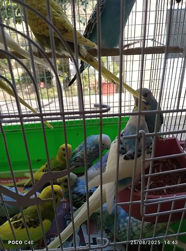 Ev şəraitində bəslənib Əl quşlaridi dişləmir sağlamdilar Təsvir: - Rənglər: sarı, yaşıl, mavi, ağ və albino/boz naxışlı müxtəlif rəng mutasiyaları. - Əl öyrəşməsinə meyilli, insan əli üzərində sak...