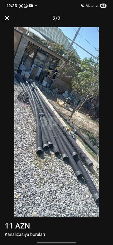Qara rəngdə, daxili hissəsi narıncı olan gofrikli drenaj boruları. Bu