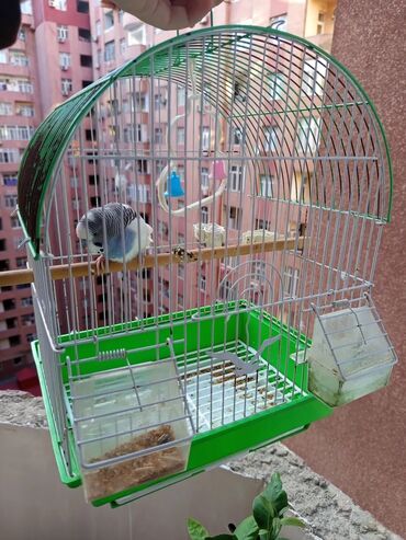 - Qəfəs: metal barmaqlıqlı, üstü qövslü; yaşıl diblikli və çıxarıla bilən altlıq