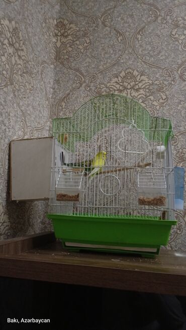 - Növ: Dalğalı tutuquşu (budgerigar), 2 ədəd (sarı və yaşıl rəng çalarları)
