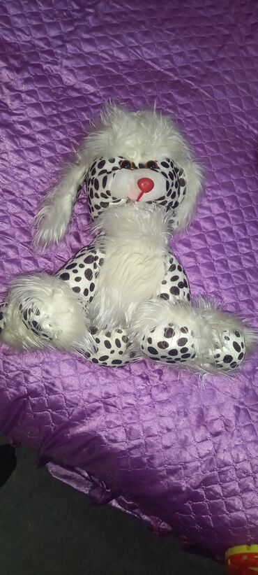 Xallı plyuş it yumşaq oyuncağı - Model: ağ rəngdə, qara xallı