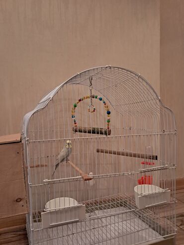 Dəst birgə təqdim olunur: tutuquşu + aksesuarlarla tam qəfəs.