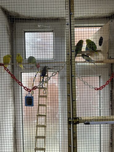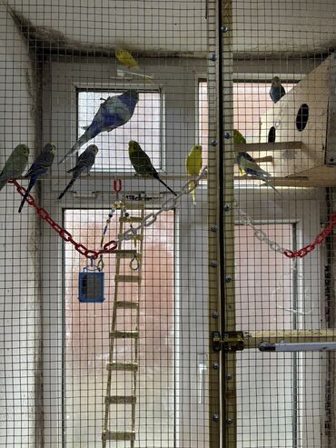 Dalmatin və aksesuarlarla birlikdə tam quş dəsti - Quşlar: 2 ədəd dalmatin (biri sarı-yaşıl, biri mavi-ağ rəngli). - Qəfəs: Kemerli üstlü, ağ-yaşıl metal konstruksiya, alt hissədə çıxarılan palet....