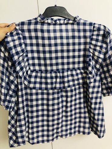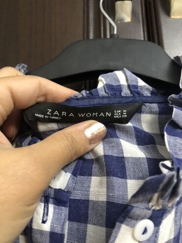 Satılır 2 azn ikinci əl kətan materialdan qadın yay köynəyi Zara Woman markalı göy və ağ damalı köynək. Boyun hissəsi və ön tərəfində büzmələri var. Yay üçün sərin və rahat seçimdir.Metropark