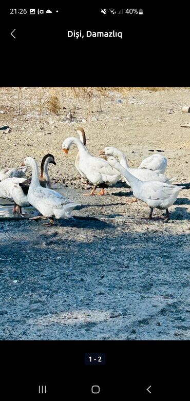 Qarışıq təsərrüfat quşları satılır - Qaz sürüsü: ağ və boz-qara zolaqlı (Seben/Boz tipinə bənzər) iri bədənli quşlar. Sürüdə dişi və erkək fərdlər var. - Ördəklər: ağ rəngdə, açıq sahədə sərbəst g...