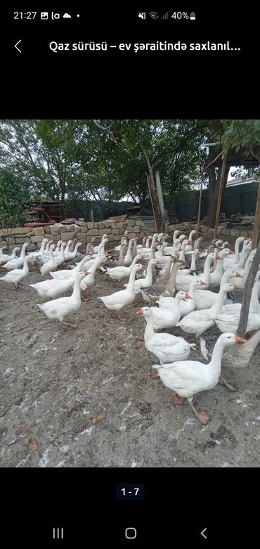 Satışda: təsərrüfatda yetişdirilən qaz sürüsü - Cinslər: ağ (yerli/Linda tipli) və boz-alaca (qriqoriya tipli) qazlar qarışıq. - Yaş qrupu: yetkin və yarımyetkin quşlar. - Yemləmə: taxıl qarışığı ...