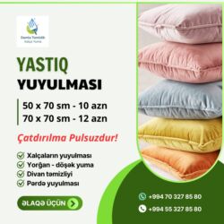 Xalça yuma Real xalca yumada xalcaların,doseklerın,yorganların, perdelerın dıvan ve kreslo,stulların yuyulub temızlenmesı mumkundur unvandan xalcaların gotrulub catdırlması pulsuzdur