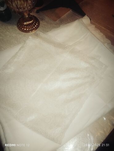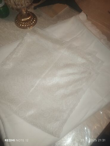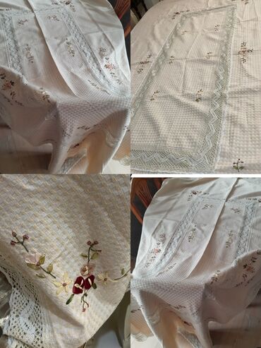 Təzə naxışlı böyük ölçülü olan bir iki dəfə işlədilib 25 manat çay dəsmalı böyük ölçülü cütü 15 manata visovkalı 6 nəfərlik 25 manata güllü kətan 20 manat