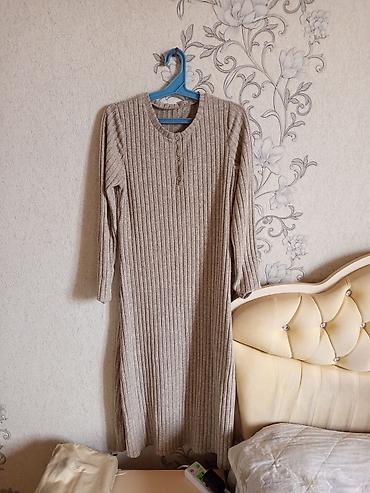 Qadın uzun don – zərif və bədənə oturan kəsim - Rəng: açıq bej - Uzunluq: midi (baldırdan aşağı) - Qol: uzun qol - Parça: elastik, incə rezinli toxuma (bədəni vurğulayan) - Dizayn detalları: - B...
