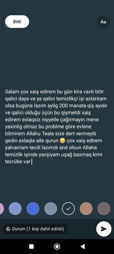 Evlere temizlik ve yir yigiw iwlerine gedirem . Buxar aparati ve divan