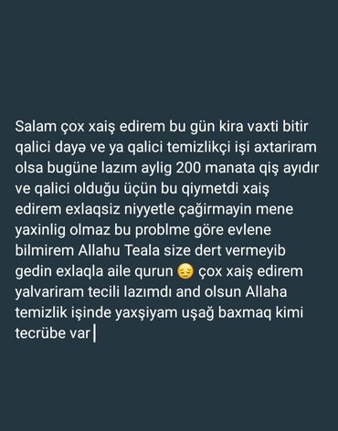 Evlere temizlik ve yir yigiw iwlerine gedirem . Buxar aparati ve divan yuyan aparatim da var. qiymet razilawma . 051. 773 . 27 . 95 wp ve zeng aktivdi