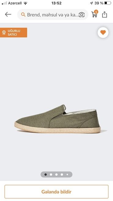 EndirimsizDeFacto brendindən olan bu zeytun yaşılı rəngli slip-on ayaqqabılar (41) gündəlik istifadə üçün uyğundur. Ölçü səhv gəlib deyə satılır.