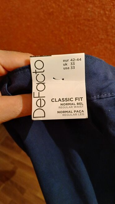 DeFacto şalvarı. Ölçü: 42-44 normal bel.Rəngi Lacivert. Türkiyədən alınıb. Ölçü böyük olduğundan satılır. Çatdırılma var. Yenidir, geyinilməyib. Etiketi üzərində.