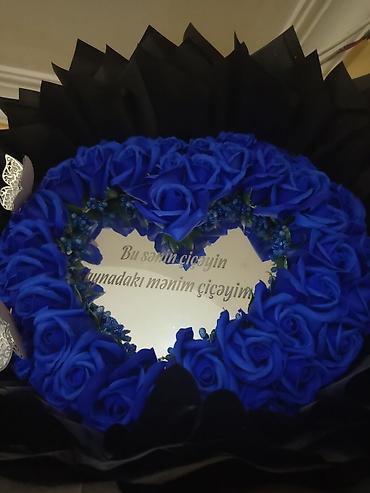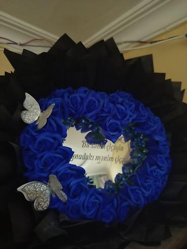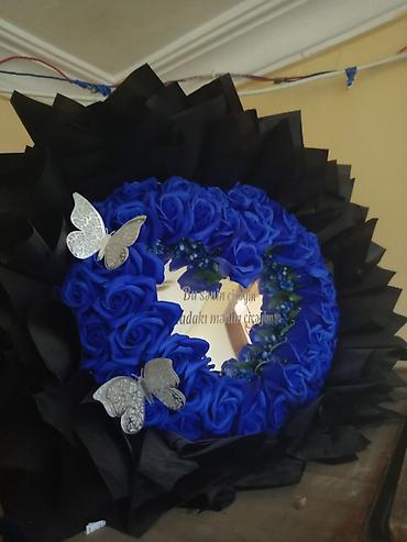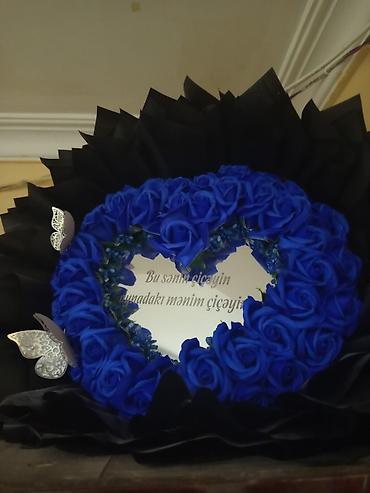 - Kobalt-mavi qızılgüllərdən dairəvi çələng (süni dekorativ güllər)