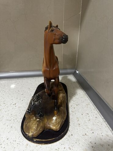 Dekorativ at fiquru - Material: polirezin (daş/taxta effektli işləmə) - Rəng: tünd-qəhvəyi tonlarda, açıq krem vurğular - Dizayn: arxa ayaqları üzərində qalxmış at kompozisiyası, bəzək elementləri...