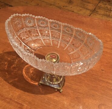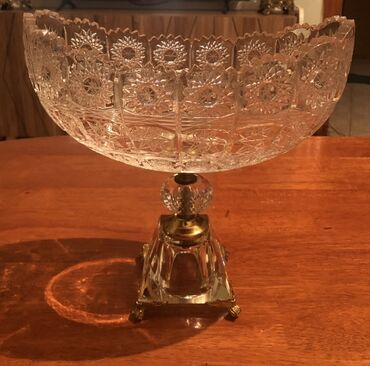 Kəsilmiş şüşədən dekorativ ayaqlı qab