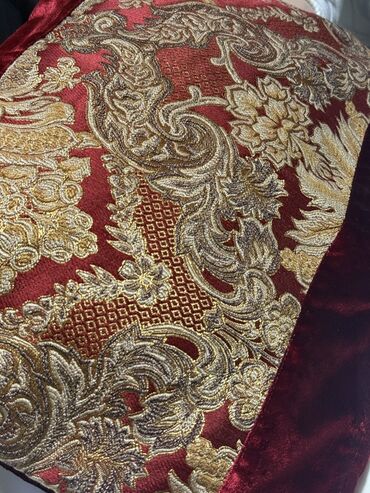 - Material: Atlaz/qırmızı məxmər kənarlar və ortada qızılı-naxışlı jakarlı parçanın kombinasiyası