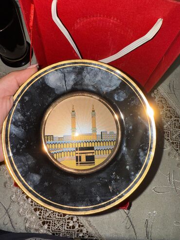 Çexiya istehsalı dekorativ porselen boşqab - Brend/İstehsalçı: Haas & Czjzek (markalanmış) - Material: incə porselen - Rəng və işləmə: dərin kobalt mavi mərkəz, 24K qızılı güllü naxışlar və haşiyə...