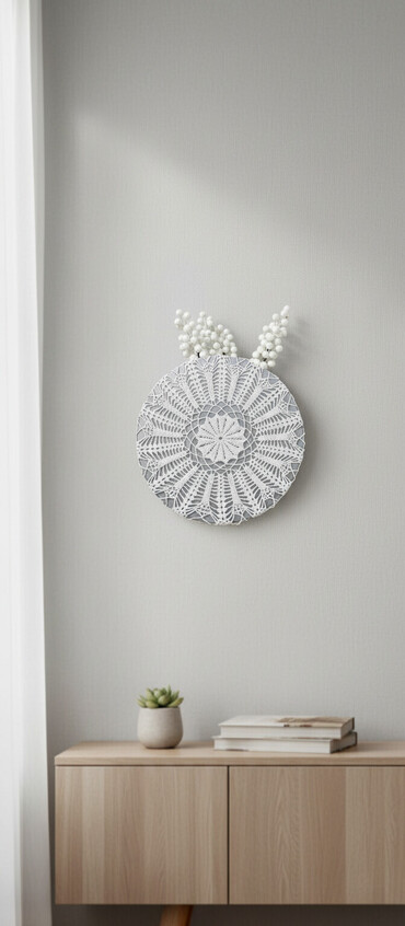 AğDekorativ divar pannosu – krujeva motivli dairəvi kompozisiya. Diametri 40 sm