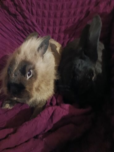 - Növ: dekorativ ev dovşanı (birinin yelesi uzun, “lionhead” tipinə bənzər), digəri tünd rəngli, qısa tüklü