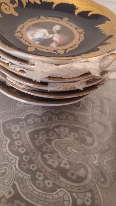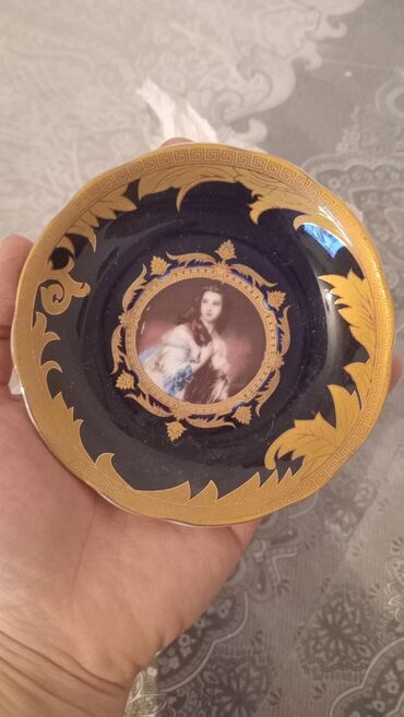 Kobalt rəngli, qızılı naxışlı dekorativ boşqab. Mərkəzində klassik süjet təsvir ..olunmuşdur. Dekorativ məqsədlər üçün uyğundur. 12 ededdir,6 ededi 15 azn..............,...............................