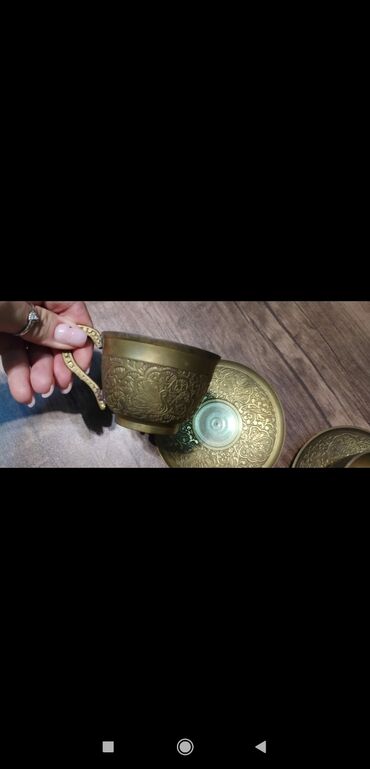 Çay dəsti, rəng - Qızılı, Metal