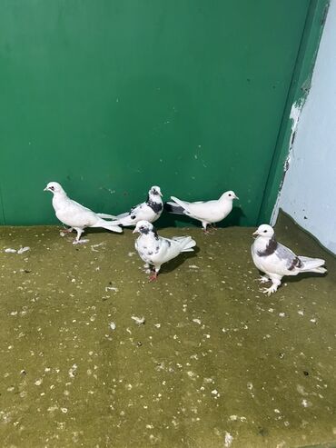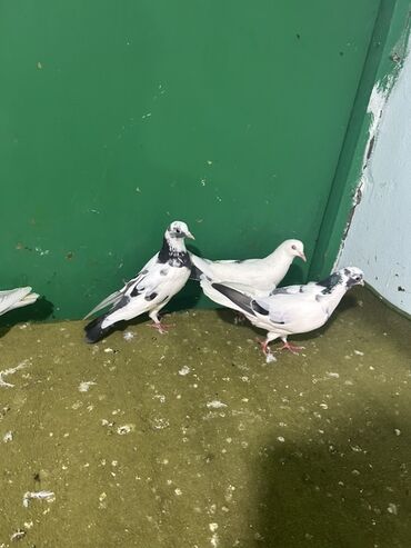 - Şəkillərdə 5 ədədə qədər ağ rəng üstünlüklü, qara və boz naxışları olan dekorativ/yarış göyərçinlər görünür.