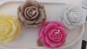 Məhsul: dekorativ şamlar (əl işi) - Gül formasında şam: yumşaq çəhrayı rəngdə, çoxqatlı ləçək detalları ilə realist görünüşlü. Üstdə mərkəzdən çıxan pambıq fitil. İnteryerdə bəzək və romantik ab-h...