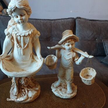 Dekorativ heykəlciklər – kənd mövzusunda oğlan və qız fiqurları - Material: boyalı gips/keramika tərzində kompozit - Dizayn: hər iki fiqur çiyinlərində taxta çubuqla iki səbət daşıyan kənd uşaqlar...