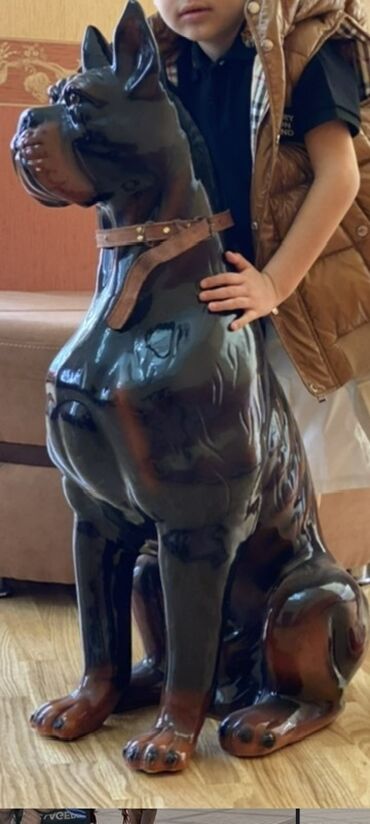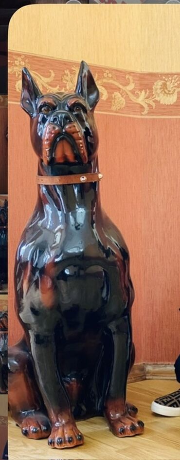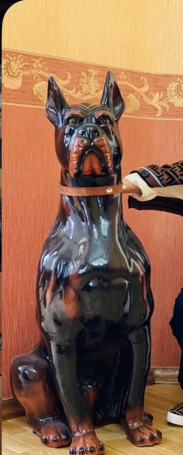 Böyük ölçülü dekorativ it heykəli – Doberman/Bokser üslubunda realist dizayn.