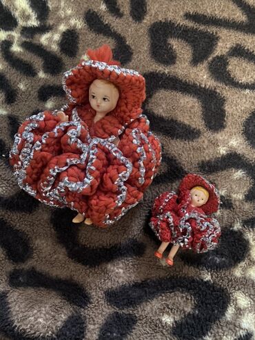 Məhsul: 2 ədəd dekorativ kolleksiya əşyası 1) Porselen fiqur - Oturan qız obrazı, əlində toxuma/alət tutaraq milli naxışlı geyimdə təsvir olunub - Əl işinə xas incə rəsmləmə: köynəyin qırmızı naxı...