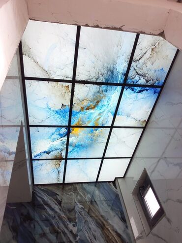 - Şüşə/akril səthli, işıqötürən panellər: tavan üçün yığma modul sistem