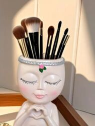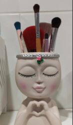 Dekorativ makiyaj fırçası qabı – “üzü gülən qız” fiqurlu organizer.