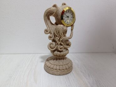 - Dizayn: dalğalı saçlı fiqur əlində antik küpə motivli postament; üst hissədə dairəvi saat yerləşdirilib