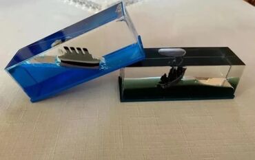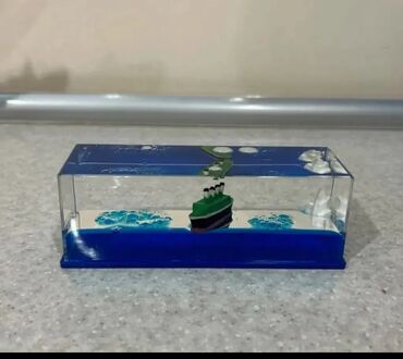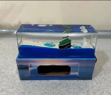 - İçəridə miniatür gəmi və buzdağı fiqurları; bloku hərəkət etdirdikdə dalğa və hərəkət effekti yaranır