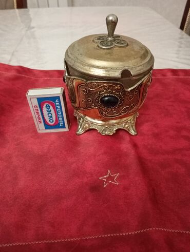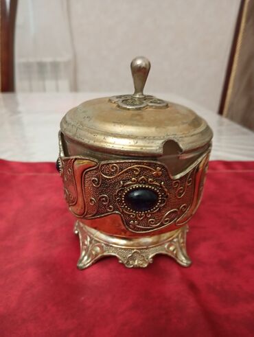 Metall qablı qapaqlı dekorativ qab – külqabı/şirinlik qabı