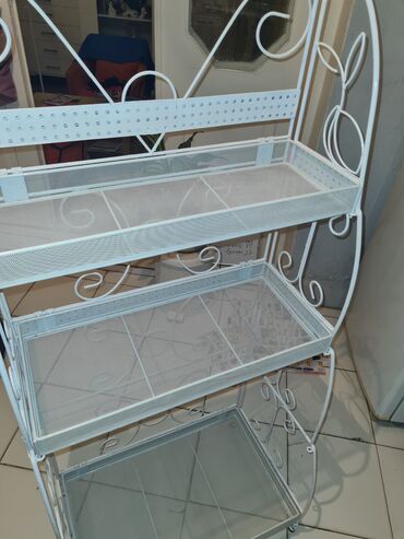 Tibbi ləvazamatlar üçün 3 mərtəbəli polka. Yeni deyil. açılan şkafda biraz cihiz var amma örtüləndə görsənmir. yenisi hər yerdə 95 azn. 50 azn satiram. Aşağı yer yoxdu!!!