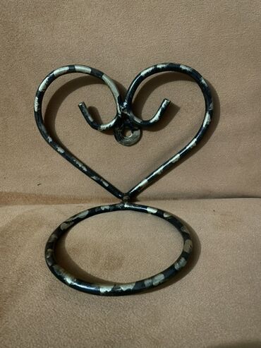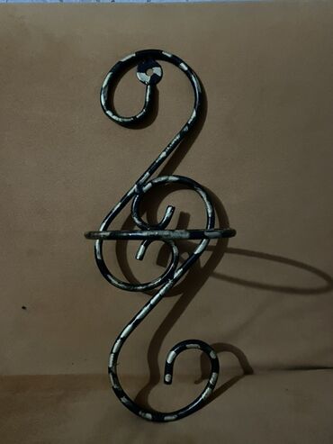 2) S-şəkilli divar asqısı/şamlıq: bükümlü ornamental dizayn, ortasında dairəvi halqa rəfindən ibarət; üst hissədə montaj dəliyi mövcuddur.