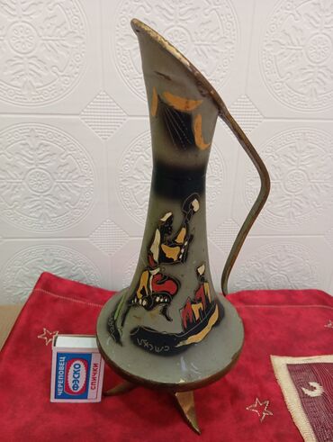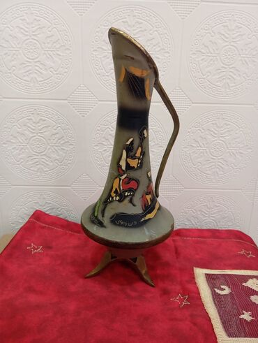 Naxışlı bürünc və ya misdən hazırlanmış, detallı dizaynı olan dekorativ vaza. Bu vaza qızılı və mis tonlarında rəngləri özündə birləşdirir, üzərində mürəkkəb oyma və ya relyef naxışlar var. Uzun və...