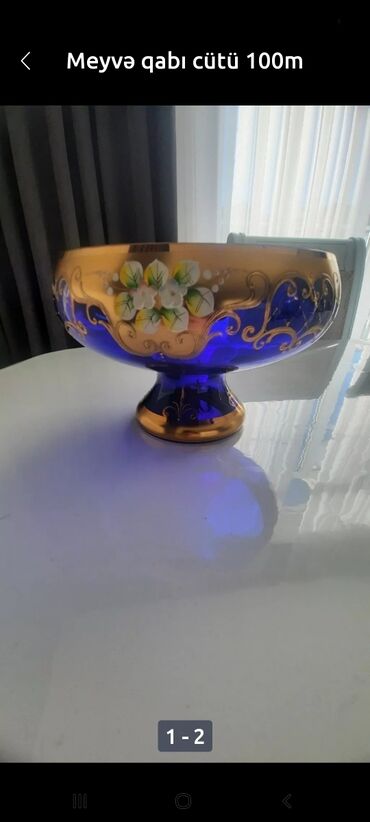 Göylə mavi rəngdə və qızılı rəngli naxışlarla bəzədilmiş bu zərif meyvə qabı evinizə estetik bir toxunuş qatır. Geniş ağzı sayəsində müxtəlif növ meyvələri rahatlıqla yerləşdirmək mümkündür. Qabın üzərindəki ağ və yaşıl çiçək naxışları ona xüsusi bir gözəllik verir. Dərin quruluşu və möhkəm oturacağı sayəsində istifadəsi rahat və dayanıqlıdır. Bu dekorativ meyvə qabı həm funksional, həm də bəzək əşyası kimi istifadə edilə bilər.Məhsulun Xüsusiyyətləri:Rəng: Göy və qızılıRəng: MaviRəng: AğMaterial: ŞüşəNaxış: ÇiçəkliNaxış: Qızılı naxışDizayn: KlassikMəqsəd: Meyvə üçünMəqsəd: DekorativQabın forması: DərinQabın forması: Geniş ağızlıOturacaq: MöhkəmOturacaq: Baza iləModel: DekorativServis: MasaüstüYuma: Əl yuma