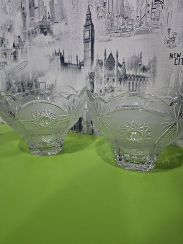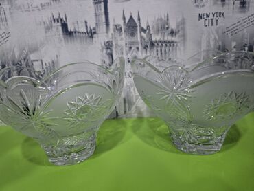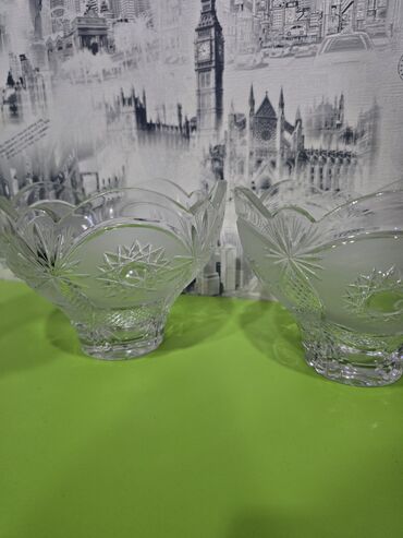 Kəsimli şüşədən hazırlanmış 2 ədəd dekorativ meyvə/şirniyyat qabı