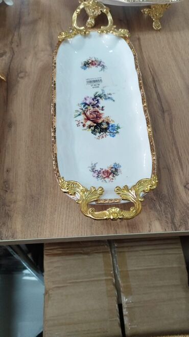 - Dizayn: zərif güllü ornamentlər, relyefli qızılı haşiyə, dekorativ tutacaqlar; bəzi modellər dörd ayaqlı dayaqla