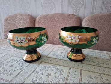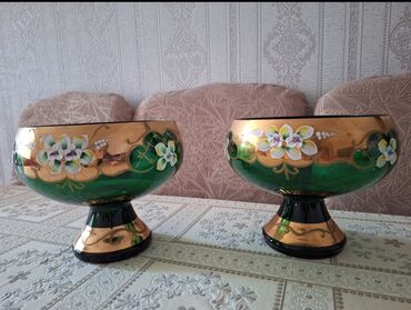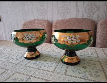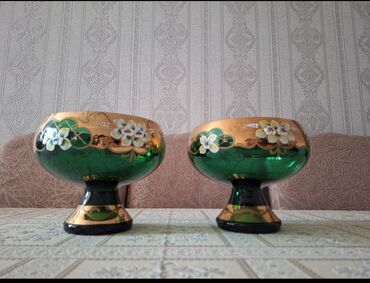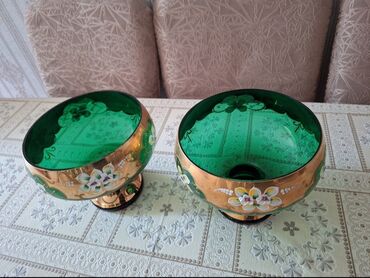 Yaşıl şüşədən hazırlanmış bu qablar qızılı naxışlar və ağ çiçək detalları ilə bəzədilmişdir. Bogema 1ededi 30azn