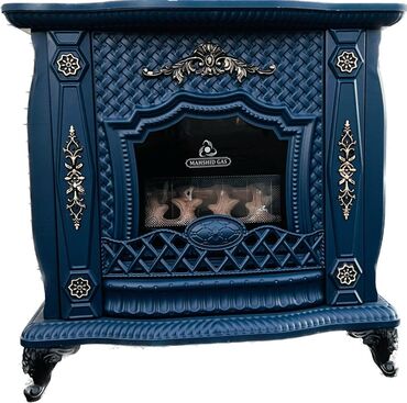 Təsvir: - Qaz sobası/soba tipli dekorativ istilik aparatı - Klassik barokko üslubunda ön panel: qızılı relyef naxışlar, şüşə pəncərə, dekorativ barmaqlıq - Korpus rəngləri: ağ-qızılı və mavi-qara t...